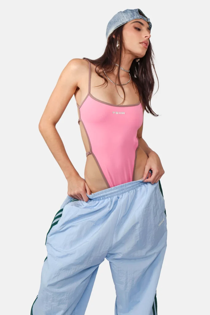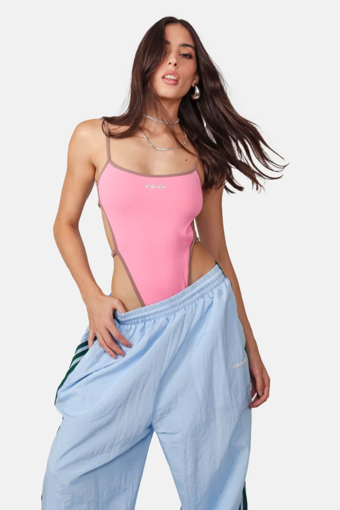 Maio feminino Ousadia, com detalhes laterias e cores vibrantes.